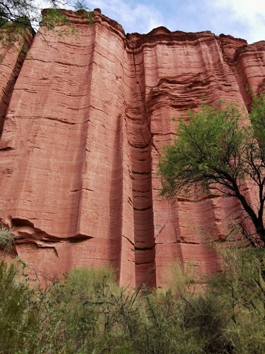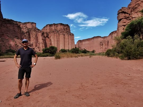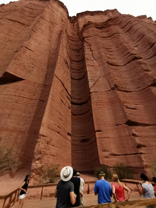 Talampaya ist „nur“ paar Kilometer hinter dem Ischigualasto. 1’300MüM, 40°C! Somit waren wir schon um die Mittagszeit dort. Rundum Wüste. Kein Schatten nur brutale Hitze 🥵. Zum Glück sehr trocken. Hatten 10% Luftfeuchtigkeit!