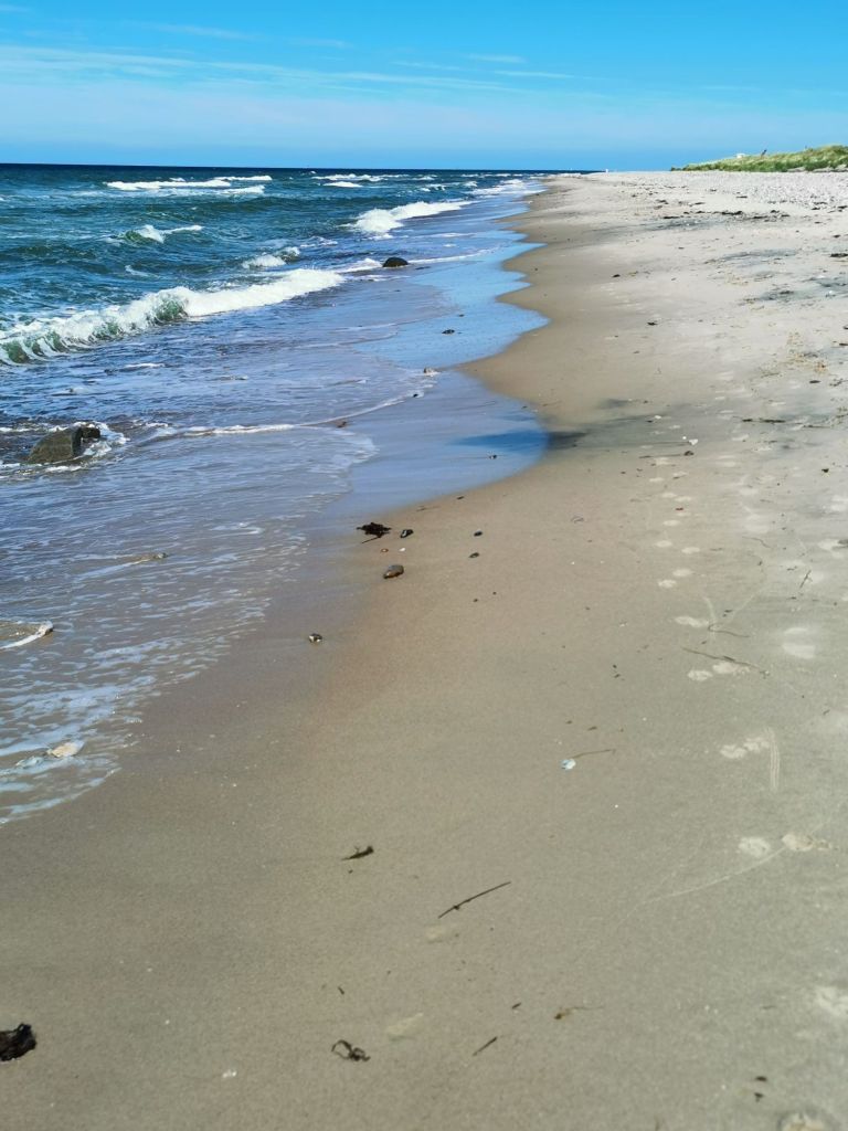 Nach der Wanderung durch die Dünen führte unser Weg direkt an den Strand. Das Meer glitzerte unter der Sonne und die sanften Wellen luden zu einem Spaziergang ein. Barfuss im Sand zu laufen, das Rauschen der Wellen zu hören und die frische Meeresbrise zu spüren, war einfach herrlich.