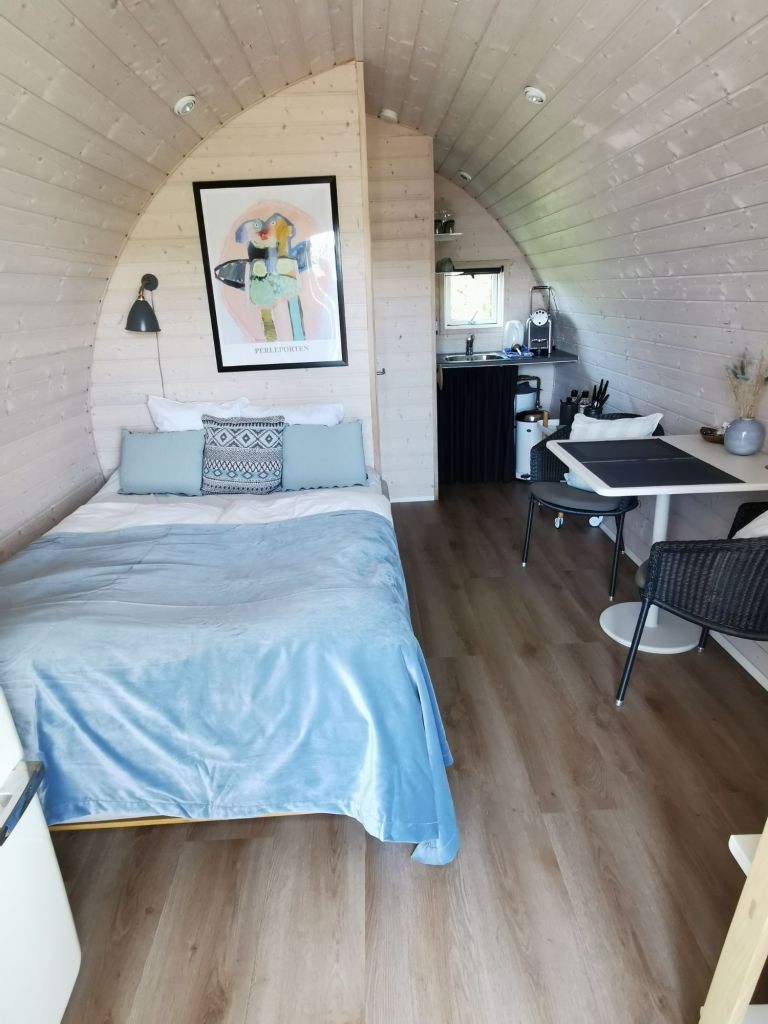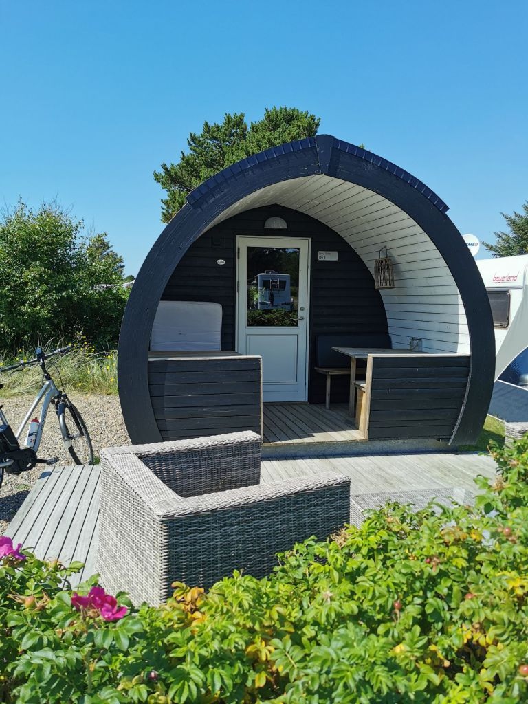 In Henne Strand angekommen, haben wir uns auf dem Campingplatz eingemietet. Unser Domizil für die nächsten zwei Nächte ist eine gemütliche Fasshütte. Sie ist überraschend gut ausgestattet und bietet alles, was wir brauchen. Wir sind sehr zufrieden mit unserer Wahl und freuen uns auf die kommenden Tage hier.