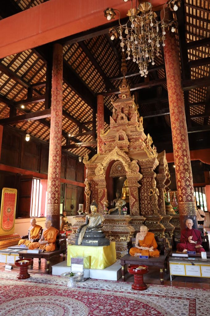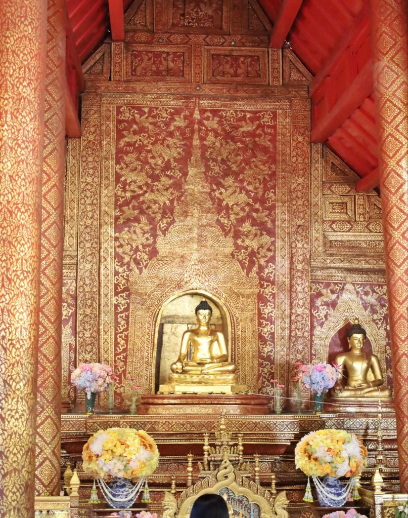Das Herzstück des Wat Phra Singh ist die Kapelle Viharn Lai Kham, die die berühmte Buddhastatue Phra Buddha Sihing beherbergt. Man hält inne und ist fasziniert von der Ruhe, die dieser Ort ausstrahlt, auch wenn er von vielen Besuchern frequentiert wird.