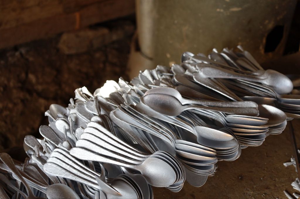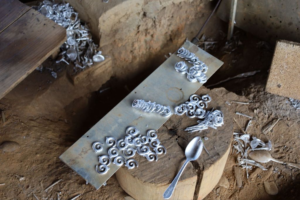 Sie nutzen das Metall von Kriegsschrott und Blindgängern, die während des Vietnamkriegs über Laos abgeworfen wurden, schmelzen es ein und giessen daraus Löffel und Schmuck. Aus Werkzeugen der Zerstörung entstehen so nützliche Alltagsgegenstände – ein starkes Symbol für den Überlebenswillen der laotischen Bevölkerung.