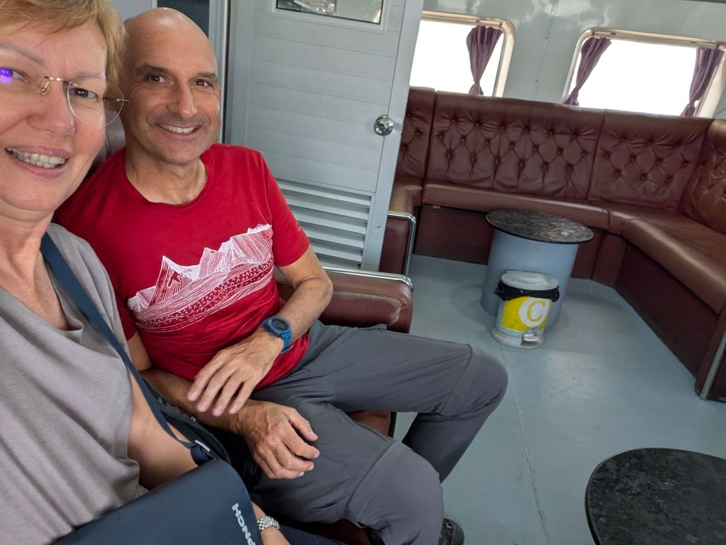 Die Reise: Zuerst ging es mit dem Boot in der okay First Class aufs Festland. Pünktlich angekommen, übernahm ein Fahrer, der uns bis zur kambodschanischen Grenze brachte.