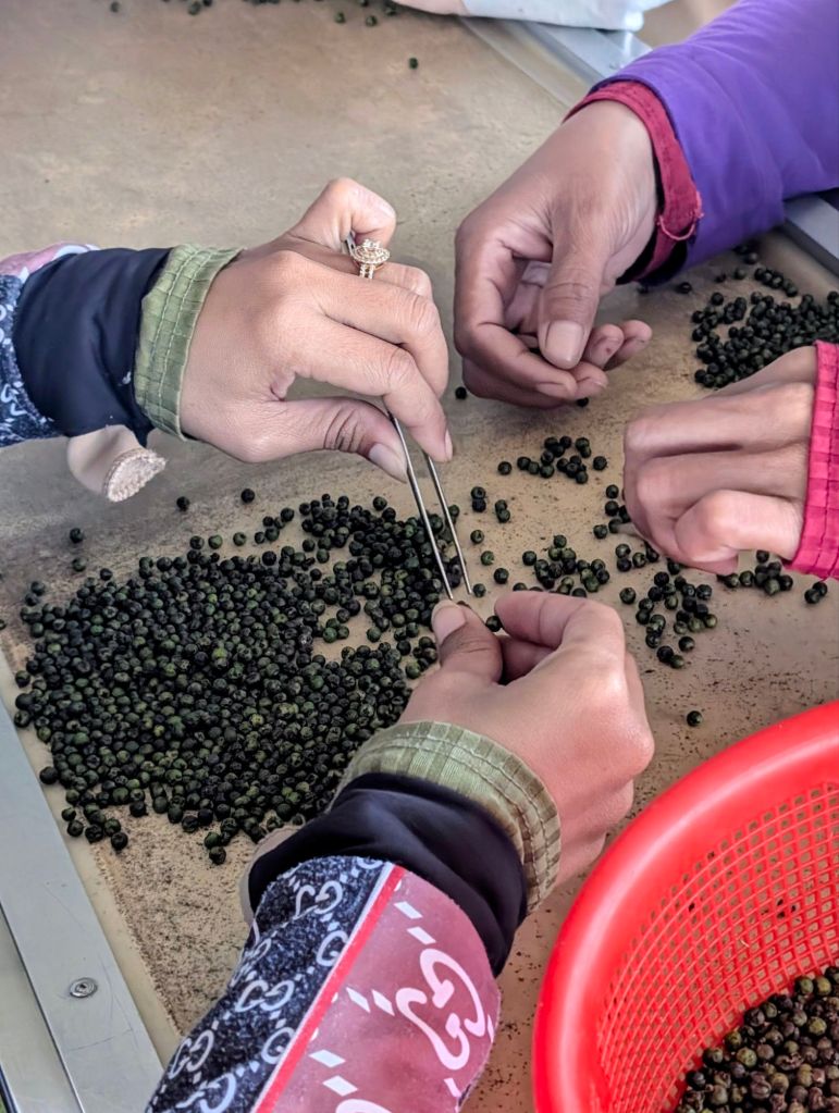 Heute stand alles im Zeichen des berühmten Kampot-Pfeffers. Als grosse Pfeffer-Liebhaberin kam ich voll auf meine Kosten: