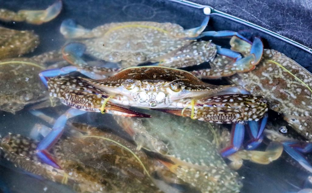 In Kep besuchten wir den berühmten Crab Market. Es war faszinierend zu beobachten, wie die Körbe mit den frischen Krabben direkt aus dem Meer gezogen werden.