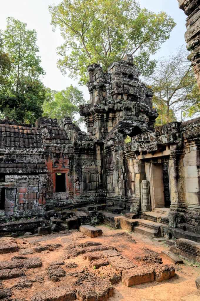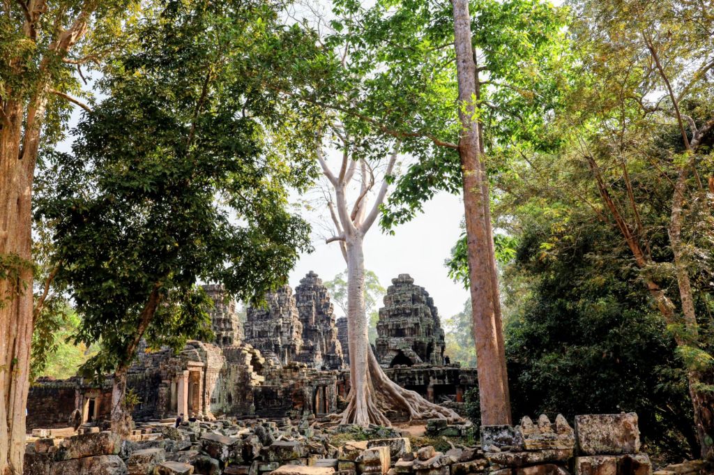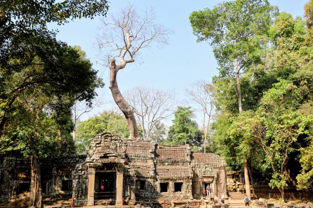 Ta Prohm – Die Kraft der Natur: Dieser Tempel wurde absichtlich in dem Zustand belassen, in dem ihn die Entdecker vorfanden. Die gigantischen Würgefeigen und Kapokbäume, die die Mauern sprengen, zeigen eindrücklich, wie sich der Dschungel alles zurückholt, wenn der Mensch geht. Dieser Tempel diente als Kulisse für den Film Tomb Raider.